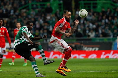 Já sabíamos que o miúdo Lindelöf iria ter mais uma prova de fogo esta noite (se é que ele precisa de prestar mais alguma prova) mas pouco antes do jogo ficámos a saber da lesão do Júlio César, que implicava lançar o Ederson para a titularidade. Acredite quem quiser, mas não fiquei minimamente preocupado, e disse-o aos que me acompanharam nas bancadas de Alvalade. O Ederson tem dado sempre excelente conta de si sempre que foi chamado, e se formos ver bem as coisas, apesar do Júlio César ser um dos esteios da equipa, a verdade é que os jogos contra o Sporting nem foram dos que lhe correram melhor (teve peso na eliminação da taça, por exemplo). Aliás, confesso que já há muito tempo que não ia a Alvalade ver o Benfica sentindo-me tão tranquilo. Para além de uma inexplicável confiança de que iríamos sair de lá com um bom resultado (quanto maior a fanfarronice e as sucessivas faltas de respeito vindas daqueles lados, maior era a minha confiança), desde o empate do nosso adversário em Guimarães que praticamente deixei de me preocupar com este jogo. Simplesmente tinha a convicção de que mesmo em caso de derrota, face aos calendários de ambas as equipas até final, quatro pontos não seriam suficientes para o Sporting conseguir segurar a liderança. O jogo começou a ser jogado de forma relativamente aberta, o que até é habitual nestes jogos até que ambas as equipas encaixem uma na outra. Surpreendeu-me um pouco ver o que me pareceu ser uma maior insegurança do Sporting na defesa do que aquilo que esperava, já que logo nos instantes iniciais os defesas deixaram várias vezes passar bolas ou fugir os nossos jogadores, e revelando uma pouco usual permeabilidade pelo meio. Era notória a preocupação do William com as movimentações do Jonas, usando quase sempre até os braços para o agarrar em cada bola que disputava, mas hoje o Jonas revelou-se mais móvel do que tem sido habitual nestes jogos e por diversas vezes caiu para as faixas ou recuou muito no terreno para conseguir libertar-se e combinar com os colegas. A acção do Mitroglou na frente também era importante, ganhando bolas aos defesas e segurando-a para dar maior profundidade ao nosso jogo.