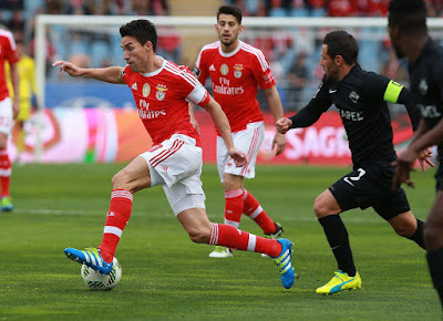 Eliseu pelo Jiménez, ficando o Gaitán a fazer o lado esquerdo todo. Com tanta gente na frente, pelo menos agora as bolas metidas para dentro da área já eram mais vezes ganhas pelos nossos jogadores - às vezes até parecia ser tanta gente lá que eram os nossos próprios jogadores a atrapalharem-se uns aos outros, como aconteceu entre o Carcela e o Jardel num canto. A persistência acabou recompensada a cinco minutos do final. Mais um centro largo vindo da direita, desta vez do André Almeida, e o Jiménez com um toque colocou a bola à sua frente e a seguir fuzilou autenticamente a baliza. Explosão de alegria num estádio quase completamente pintado de vermelho, mas ainda foi preciso esperar mais uns longos treze minutos (cinco de tempo regulamentar, mais seis de compensação, mas dois de compensação sobre a compensação) até podermos celebrar a vitória - e como tínhamos a equipa completamente descompensada, algum azar poderia acontecer. Mas nem mesmo com os seus jogadores a ficarem miraculosamente curados de todas as mazelas de que padeceram durante todo o tempo até ao nosso segundo golo a Académica conseguiu somar um remate ao único que tinham feito até então.
